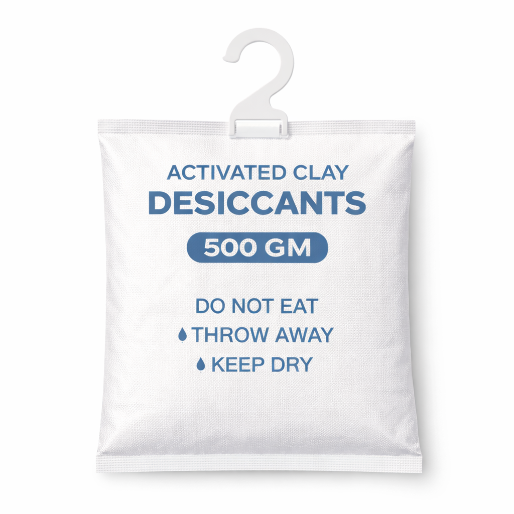 Silica Gel Blue Pouches contain indicating silica gel that changes color upon moisture absorption, allowing easy monitoring of desiccant saturation.